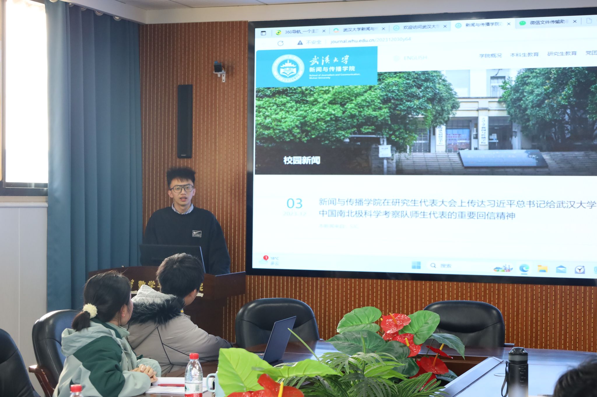 第二十二届研究生会第二次例会暨新闻稿撰写专项培训会顺利举行。会议邀请新闻与传播学院研究生辅导员杨辉老师、兼职辅导员卢熙民老师进行新闻写作培训指导,全体院研究生会成员参加会议。本次培训会由院团委副书记、研究生辅导员宋智祺老师主持。