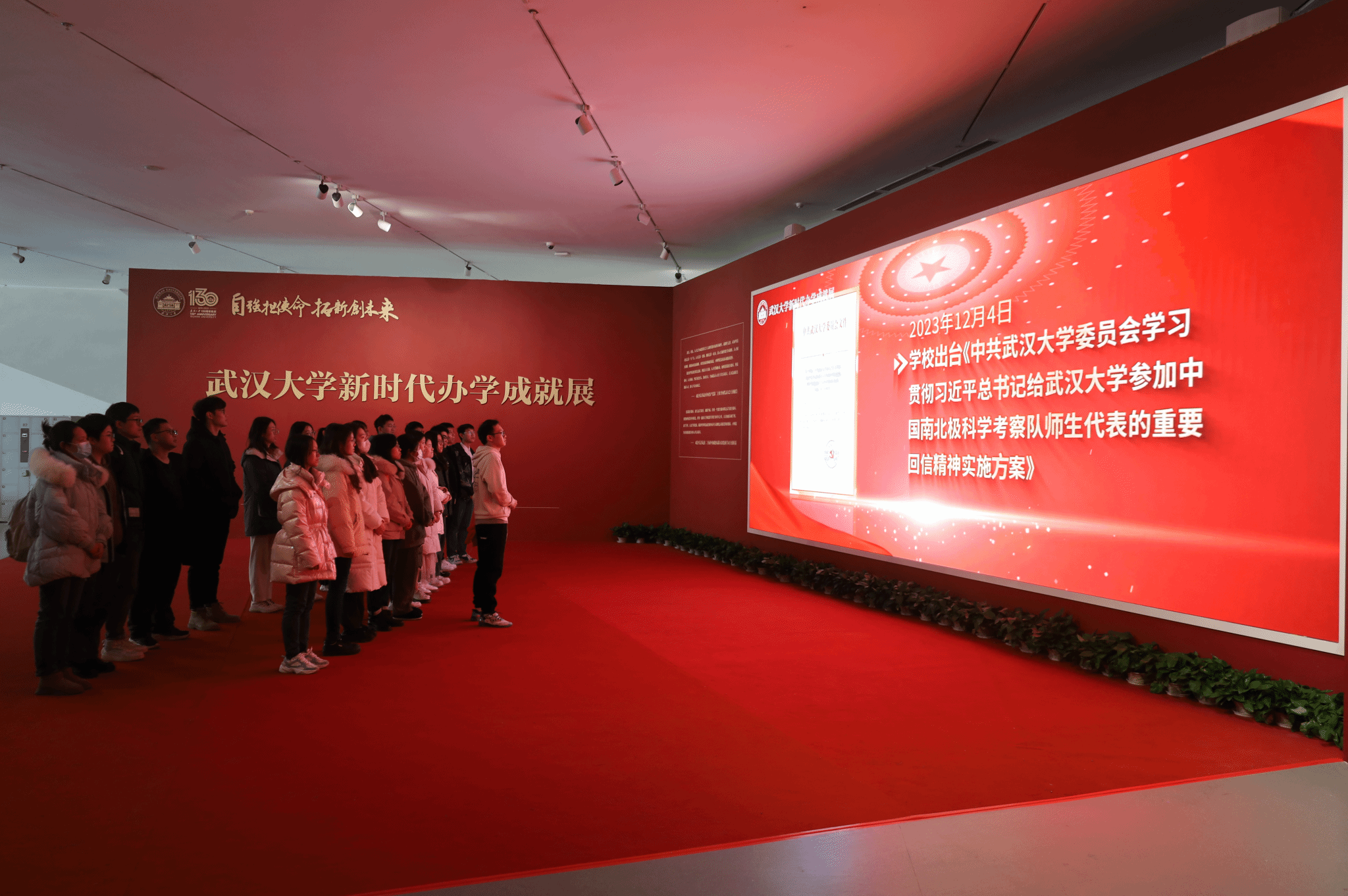 进入博物馆,同志们在一楼大厅的大屏幕前驻足良久,认真观看教育视频。视频讲述了武汉大学南北极科学考察队的发展历史,展现了武汉大学极地科考队员在极地工作、学习习近平总书记重要回信精神的场景,列举了习近平总书记回信以来校党委贯彻落实习近平总书记重要回信精神的重大举措。教育视频简短而深刻,朴实而感人,同志们深受触动�