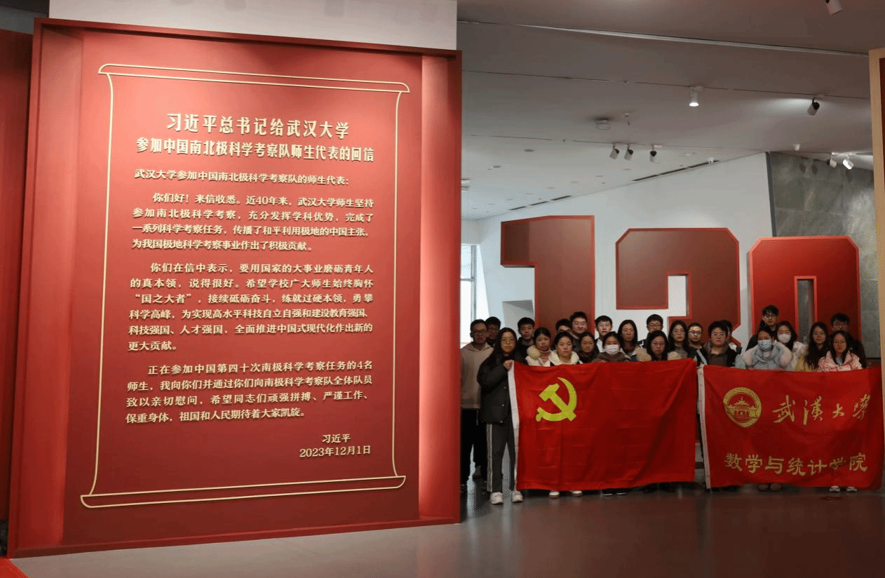 12�26日,我院概率论与数理统计专业硕士生党支部和基础数学专业硕士生党支部赴万林艺术博物馆开展党日活动,“沉浸式”学习习近平总书记给武汉大学参加中国南北极科学考察队师生代表的重要回信精神,“交互式”了解武汉大学极地科考的建设背景与发展状况。院研究生兼职辅导员刘润泽带队前往�