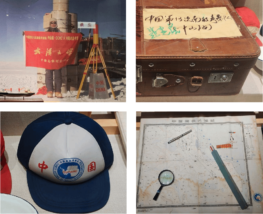 来到“珞珞如石”基本陈列馆的南极科考板块,极地科考实物把同志们的心拉到了千里之外的极寒之地。蜕皮的行李箱、略微泛黄的帽子,诉说着科考队员在南极的艰苦生活和峥嵘岁月。南极冰盖最高点dome A上飘扬的红旗,向世人展现了武大人登顶dome A的壮举,张胜凯成为人类历史上登上南极内陆冰盖最高点的第一人;鄂栋臣绘制的“中国第一张南极地图”,体现了武大人远赴险地、奋战南极冰雪的坚定决心,彰显了我国维护南极权益的强大能力……一个个极地科考实物,为我们提供了宝贵的历史见证,激荡起振奋人心的精神力量�