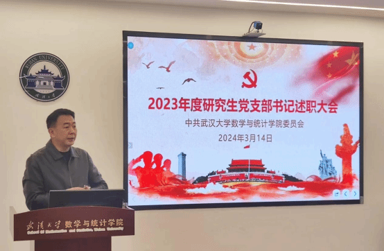 研究生党支部在过去一年取得的成绩,对各支部的辛勤付出表示感谢。他表示,担任党支部书记有助于提高大家的语言表达能力、组织管理能力和就业竞争力,希望大家在实现自我提升的同时,强化工作创新能力,更加主动地为支部建设贡献新的智慧和力量。他结合自身工作经历和学院工作实际,在提高党支部凝聚力、推动理论学习与专业学习深度融合等方面提出了具体的指导意见。