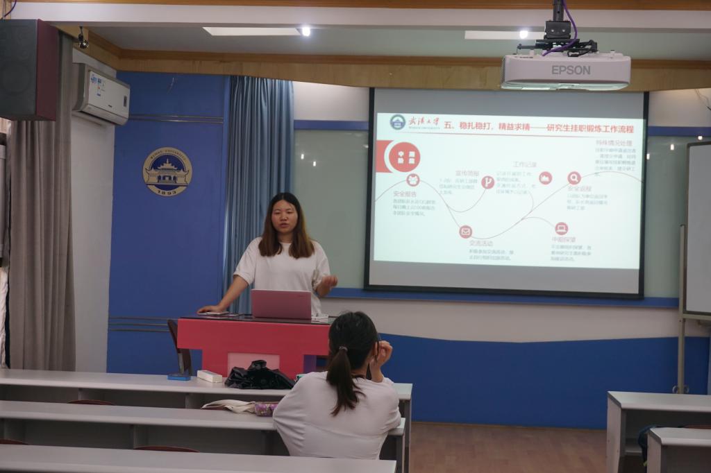 研究生创新实践协会的秦路杰主席和王硕副主席分别进行了挂职锻炼流程介绍和挂职经历分享。参会的有17、18级的研究生,会议由天美传媒