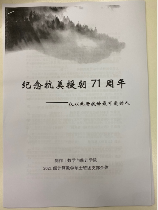为庆祝中国共产党成立100周年,讴歌党的百年奋斗历程,引导广大团员青年学史明理、学史增信、学史崇德、学史力行,厚植爱党、爱国、爱社会主义的情感,让红色基因、革命薪火代代相传,11�16日下午,2021级计算数学硕士班团支部于�1303教室顺利开展“纪念中国人民志愿军抗美援朝71周年”主题团日活动�