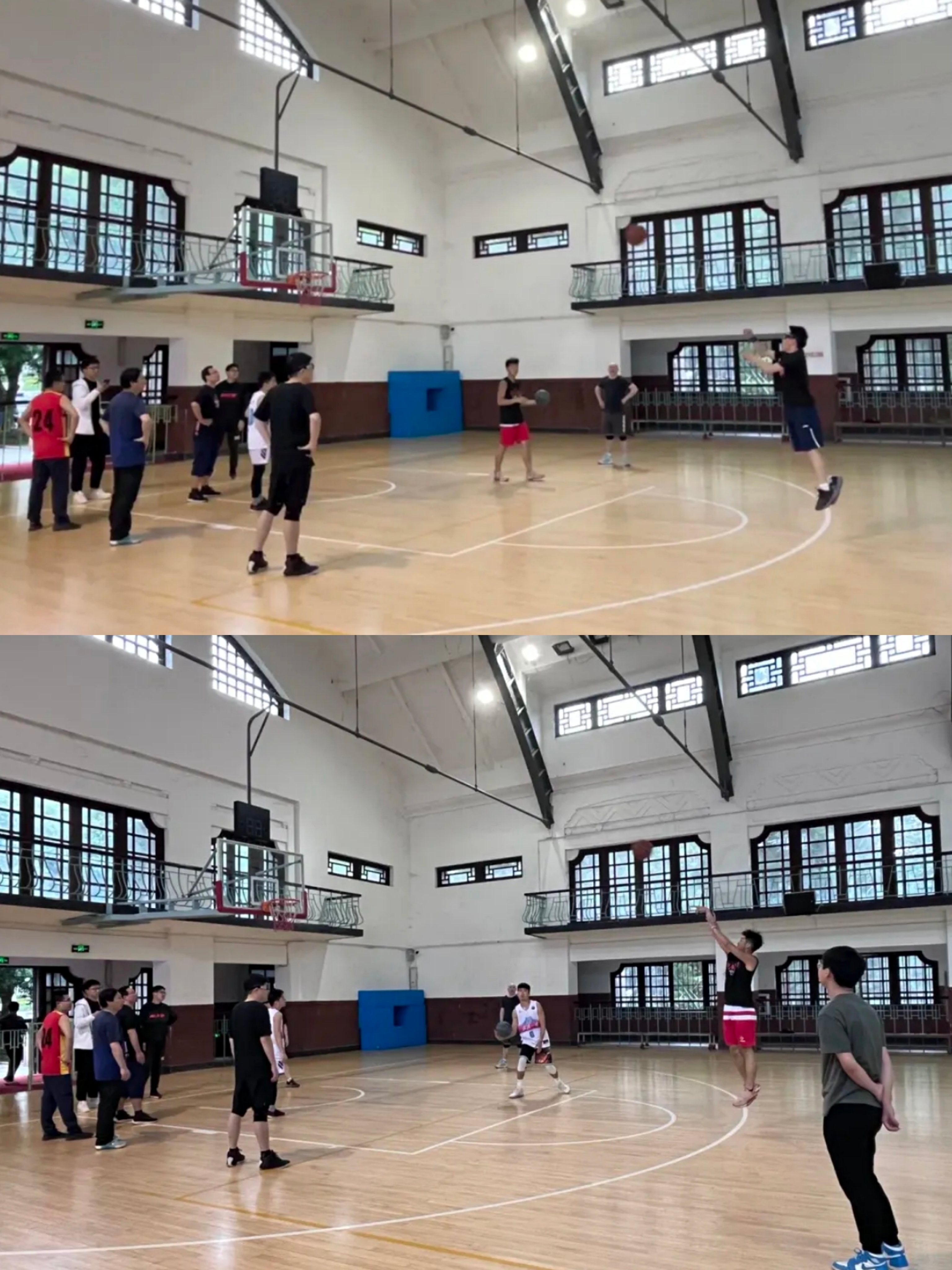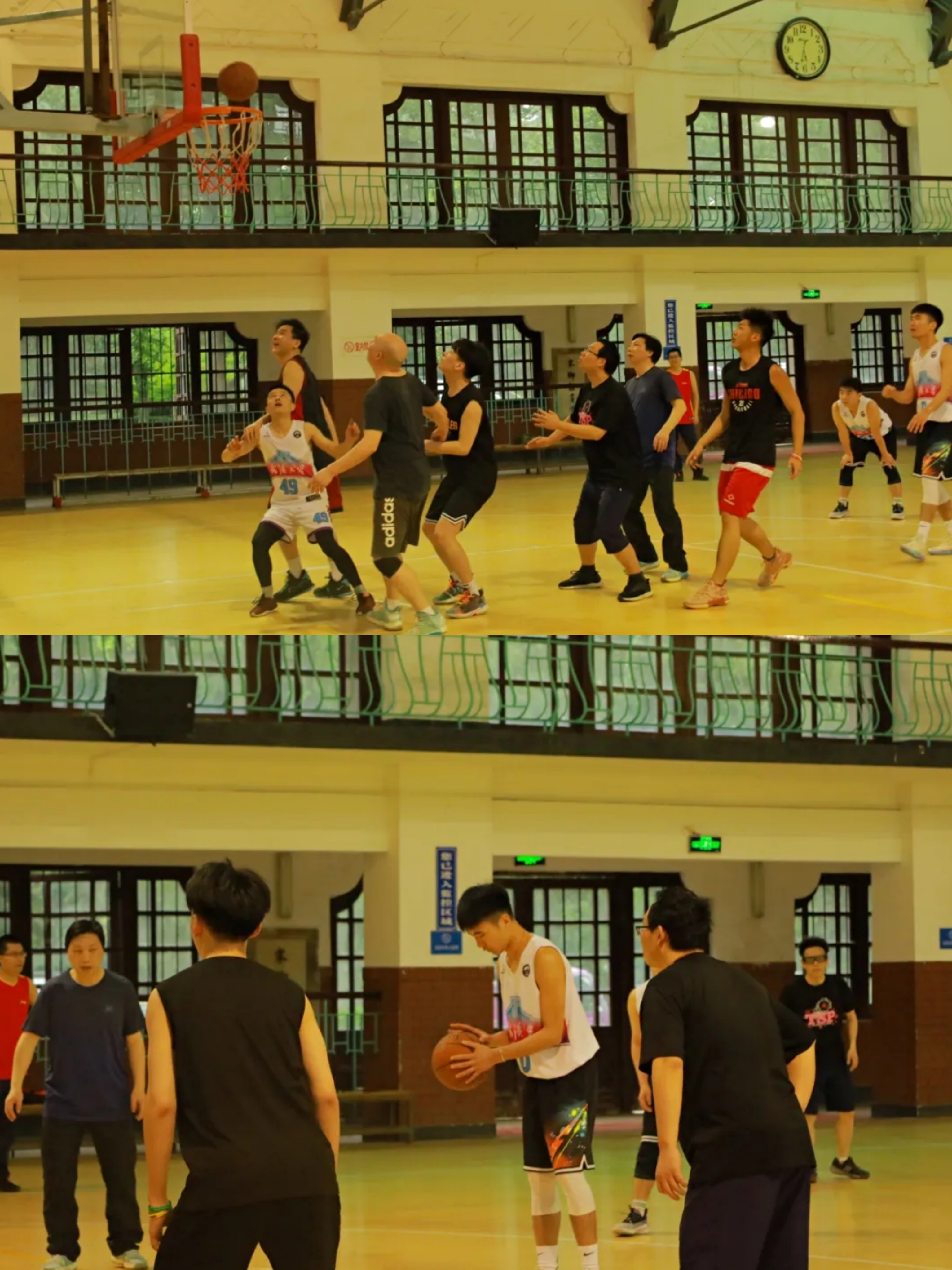 在短暂休整后,双方各轮换了一些队员,教师队这边更是上了让光林老师请来的外援赵孟飞老师。第二局一开场就由学生队的刘其睿得分。教师队马上予以回击,让光林老师组织起了有效的进攻打乱了学生队的节奏,然后由洪桂祥老师进行突破,一个长途奔袭带球入禁区,假动作骗过防守球员传球给赵孟飞老师,赵梦飞老师则利用其身高优势帮助教师队连进两球,拿到宝贵的4分,焦雨领老师也是乘胜追击也在阵地中轻松拿下一球。学生队则也还是在努力咬紧维持优势但时常错失机会。最后只见让光林老师在一片防守球员中,手一挥,一个跳跃将球送入篮筐,大家喝彩连连。第二局学生队和教师队战绩基本持平,但学生队还是凭借第一局的分差以33:20的比分甩开教师队。