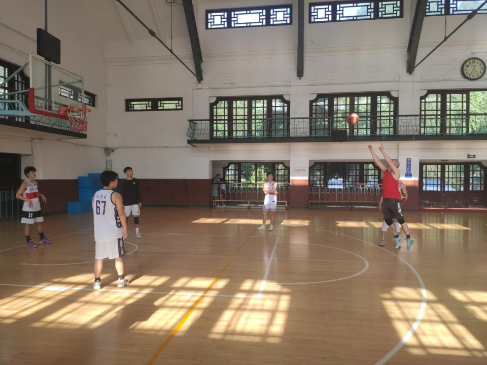 比赛的第一个环节是三分投篮游戏,是正式比赛前的“开胃小菜”。学生和教师以个人身份参加比赛,分别在一分钟之内三分线外投篮,比较投进数。这个环节数名同学与老师积极参加,争相投篮,高高跃起,把篮球投成一道优美的弧线,最后命中篮筐。最终,张润泽同学以10球的成绩名列前茅,史懿玮同学紧随其后,投进9球,洪桂祥老师和魏文隆同学投进6球,并列第三名。