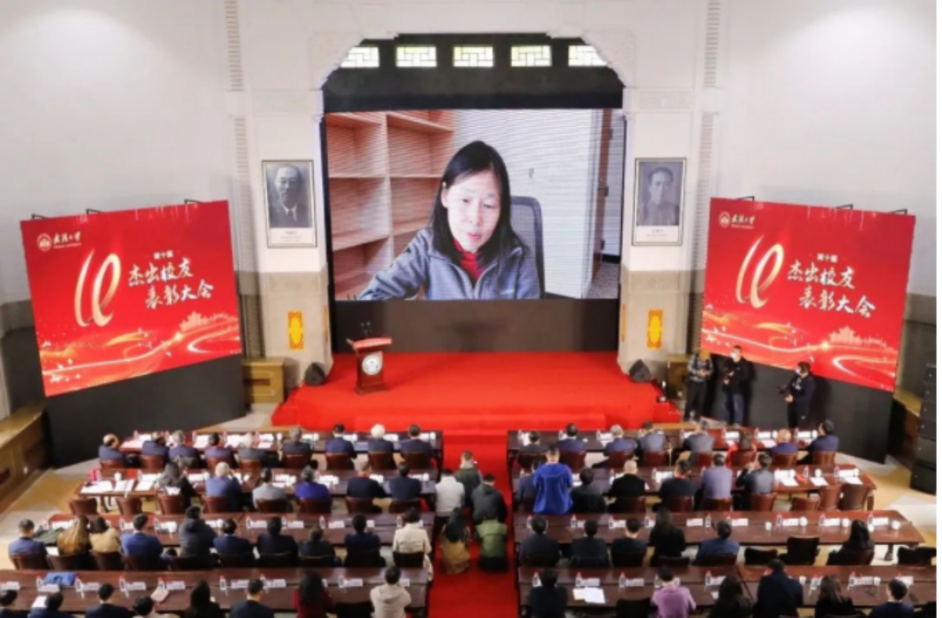 表彰大会上陈晓红校友发来视频感言:“当我得知自己获得杰出校友的荣誉时,我的脑海里浮现了许多美好的回忆。现在正是武大校园里樱花盛开的季节,我从前住的老斋舍就在樱花大道上。本科四年期间,我得到了许多老师和同学的支持和帮助,学到了许多有用的知识和技能,这些在后来都发挥了很大的作用,帮助我度过了许多学术生涯的挑战,让我在学术界能够取得一些成就。”陈晓红校友十分怀念和感恩在母校的学习生活。