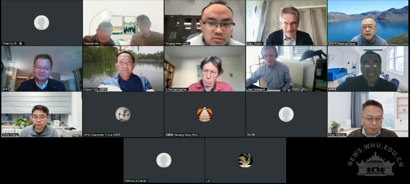 On February 3, the Bilateral Academic Committee Meeting of the Sino-French Research Center for Mathematics at Wuhan University was successfully held. Attendees included Academician Zhang Pingwen, President of Wuhan University; Academician Zhang Weiping from Nankai University; Professor Marc Rosso from Université Paris Cité; Professor Patrice Le Calvez from Sorbonne University; Professor Stephane Nonnenmacher from Université Paris-Saclay; Professor Jean Dolbeault from Université Paris-Dauphine; Academician Shen Weixiao from Fudan University; Professor Liu Jianya, Vice President of Shandong University; Professor Zhang Zhifei from Peking University; Professor Ma Xinan from the University of Science and Technology of China; and Professor Ma Xiaonan from Nankai University, among other distinguished scholars. The meeting was held online and chaired by Professor Zhang Weiping.